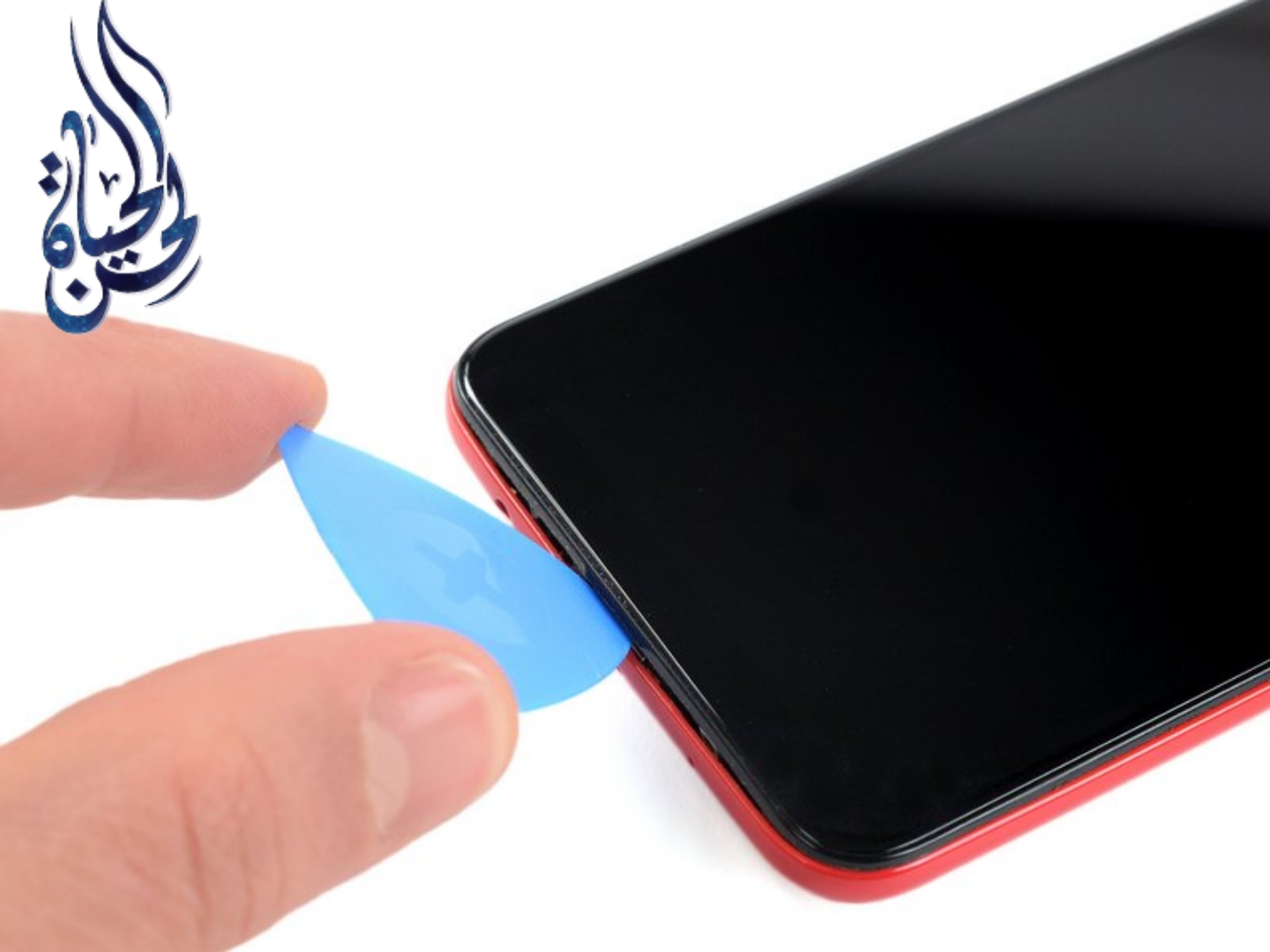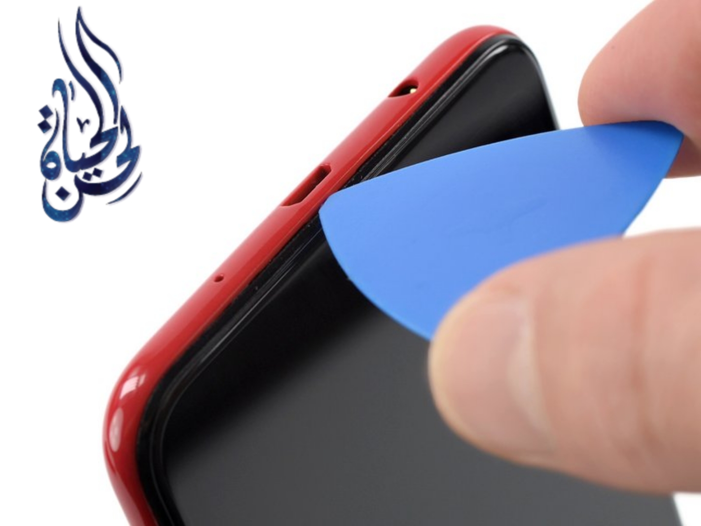 قم بتمرير الفتحة إلى الزاوية اليسرى السفلية لتحرير المقاطع. قم بتمرير الفتحة إلى الزاوية اليسرى السفلية لتحرير المقاطعقم بتمرير الفتحة على طول الحافة اليسرى إلى الزاوية اليسرى العلوية للهاتف لتحرير المقاطعقم بتمرير الفتحة من الزاوية اليسرى العلوية إلى الزاوية اليمنى العليا لتحرير المشابك البلاستيكيةقم بتمرير الالتقاط الافتتاحي من الزاوية اليسرى العلوية إلى الزاوية اليمنى السفلية لتحرير المقاطع المتبقية